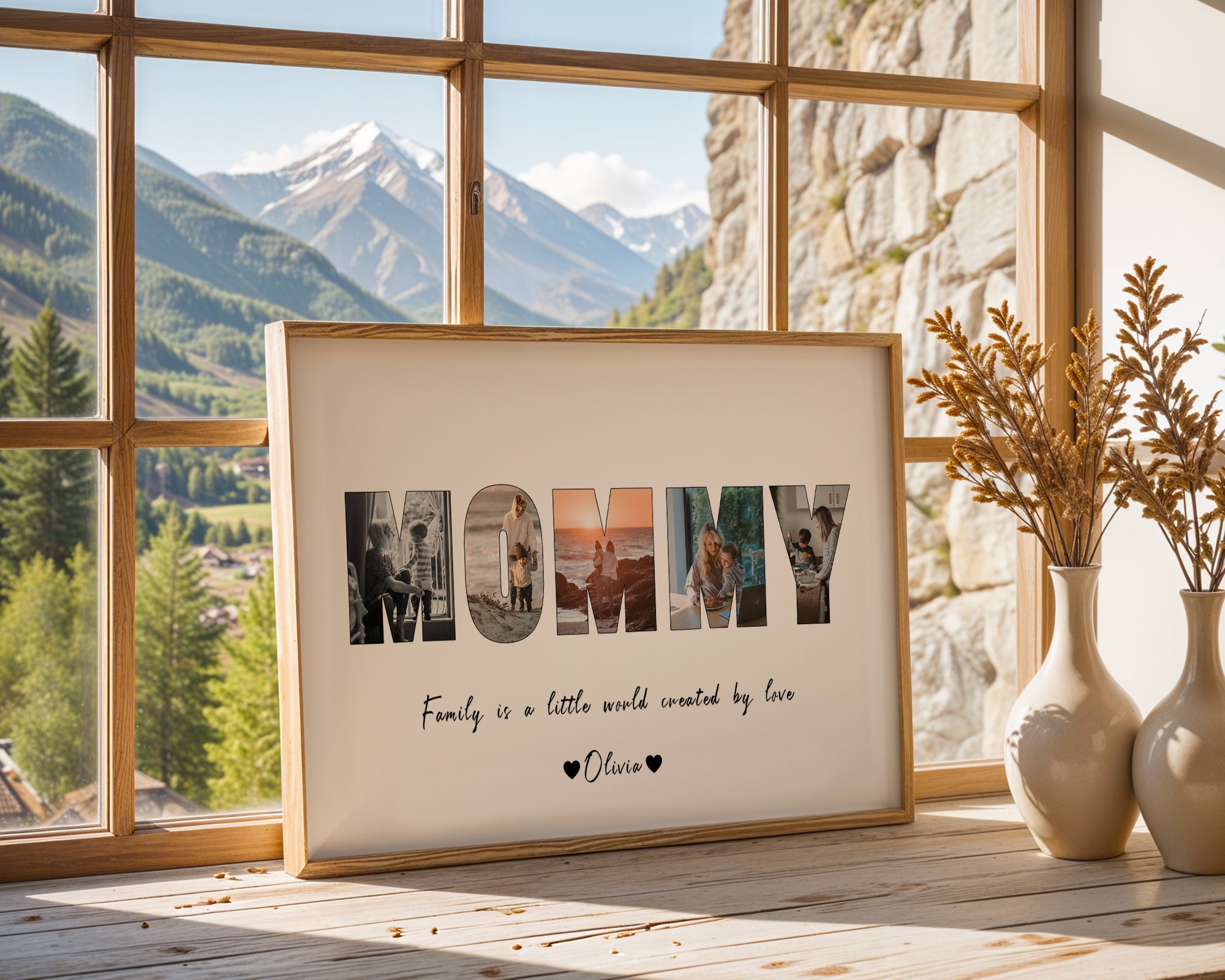 Celebrate the heart of your family with this special ‘Mommy’ collage print. A thoughtful and emotional gift, each letter is brought to life with your most meaningful photos.
